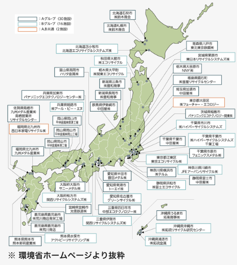 再商品化等事業者は全国に設置されている指定引取場所で廃家電を引取り、再商品化(リサイクル)します。