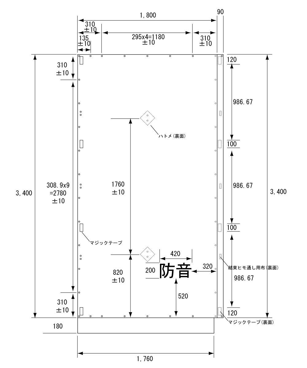 ※品番によりハトメピッチ(穴の間隔)に若干違いがあります、混在してご使用する場合はご注意ください。