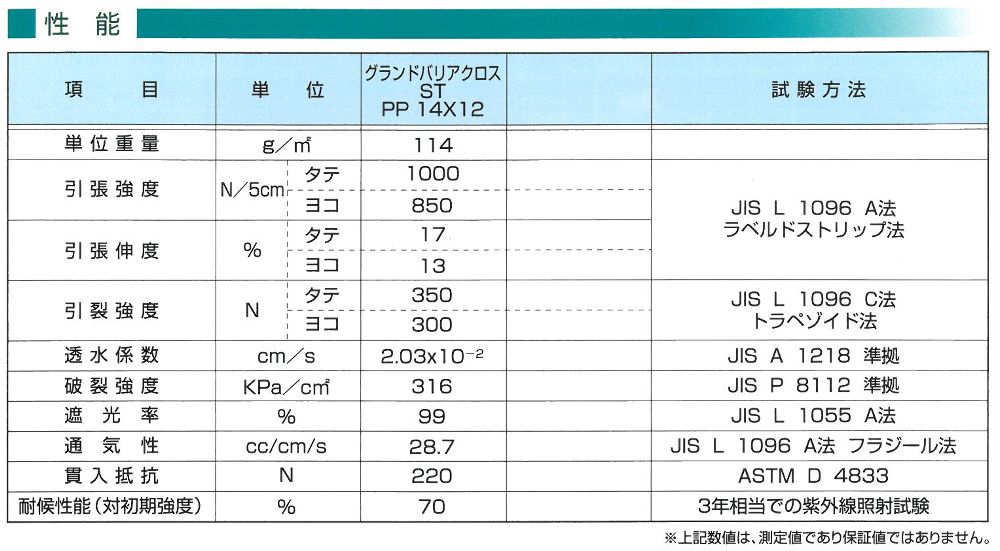 長期運用に耐える紫外線劣化防止剤添加、高透水率の特殊繊維、視覚刺激の少ない深緑色を選択、地域環境の保全に是非ご活用下さい。