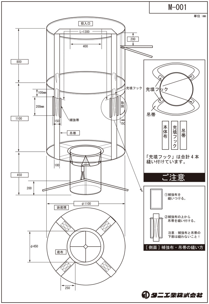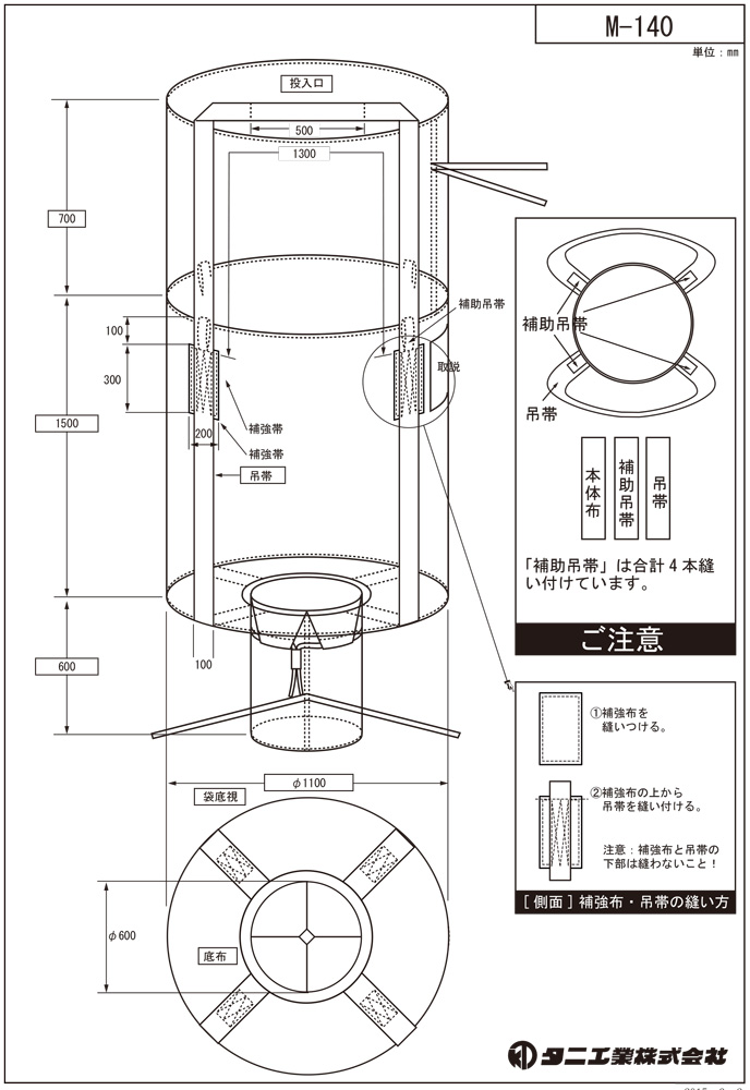| M-001 | 1.0m³ | φ1,100×H1,100mm | φ450 | 1,000kg | 折畳式軽量(AKF-1) 折畳式ローコスト(AKF-Y1) 差込式角型(KT-1) |