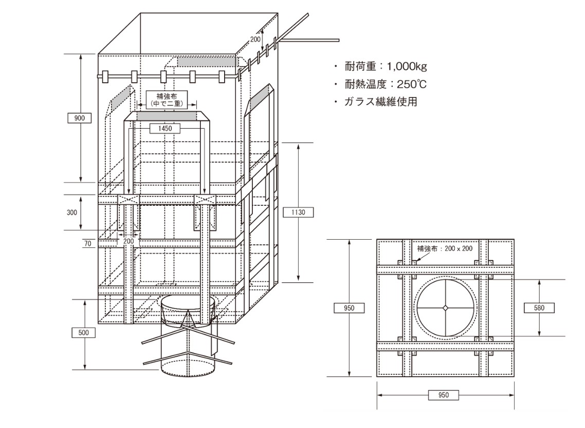 繰返し使用可能で、燃えにくい素材で作られた耐熱温度250℃のフレコンバッグ。水切りバック・耐熱バックを実用新案申請中!!