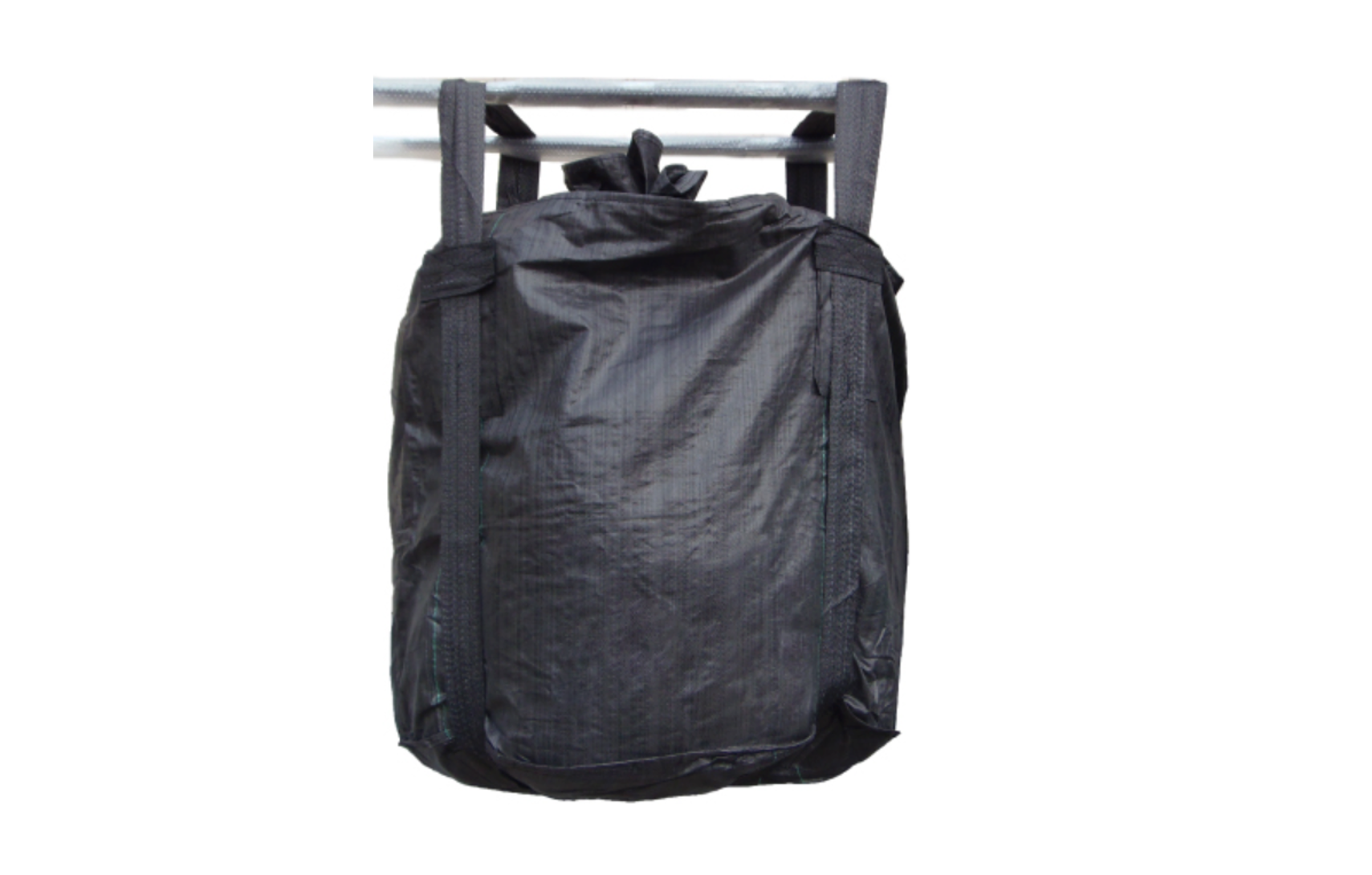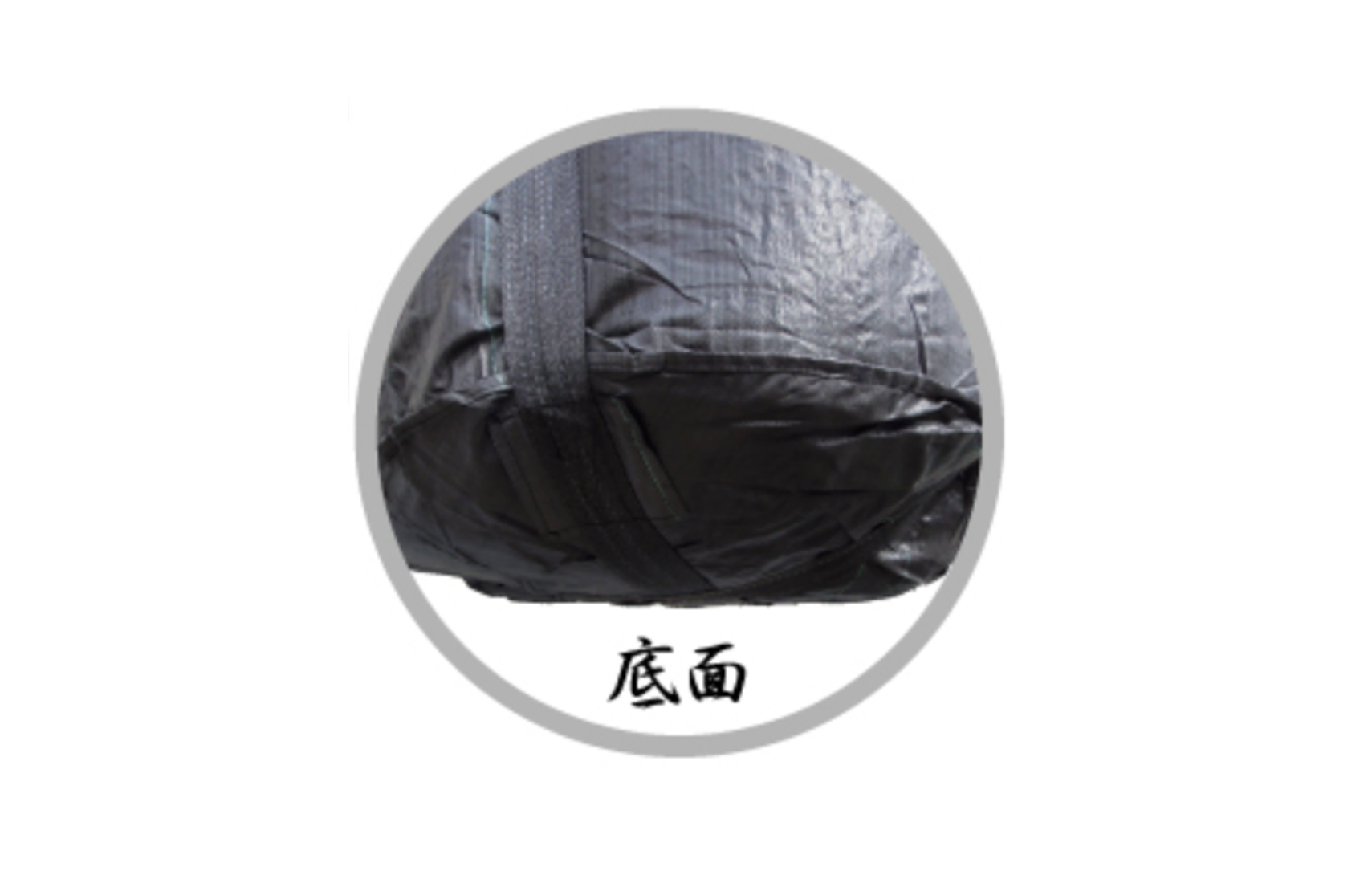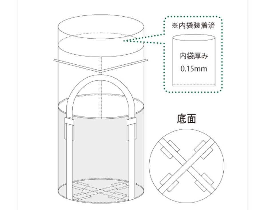 2トンの耐荷重および3年相当の野外設置が可能な高耐候性の大型土のうフレコンバッグに、厚み0.15mmの内袋を装着しました。