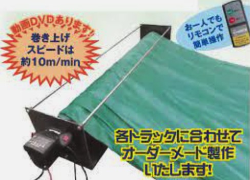 ・トラックシートを電動で巻き上げます・トラックのバッテリーに繋いで作動・操作はリモコンで簡単楽々。・最大シート寸法 11m×5m